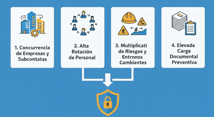 En el sector de la construcción, la CAE es especialmente crítica debido a la concurrencia constante de empresas y subcontratas en un mismo centro de trabajo, lo que se suma a una alta rotación de personal y a una multiplicidad de riesgos en entornos altamente cambiantes, factores que generan una elevada carga documental preventiva necesaria para garantizar la seguridad y el cumplimiento normativo.