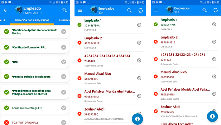 • Acceso al estado de todas las empresas, empleados y máquinas, comprobando si la documentación está OK o ERROR.